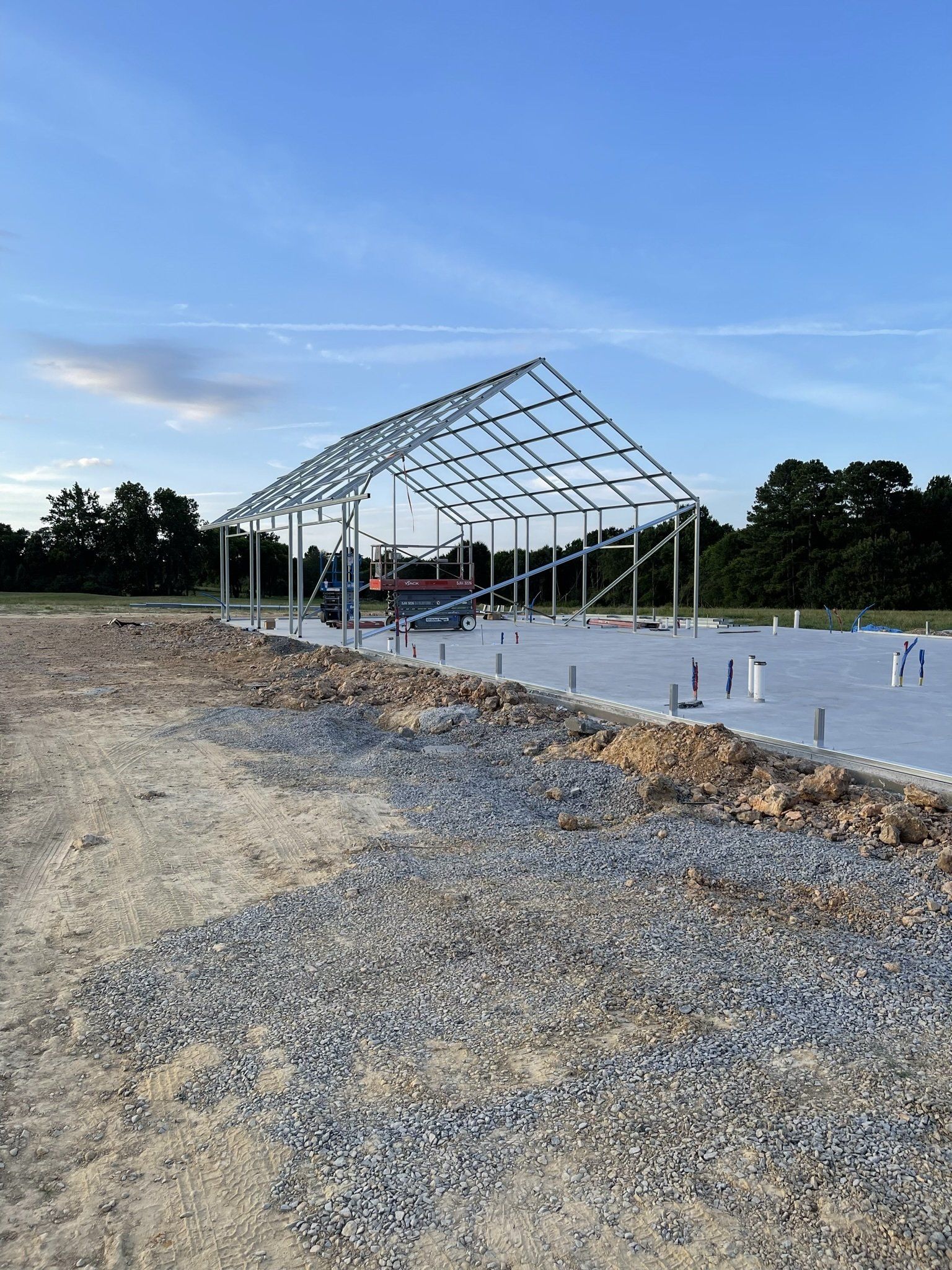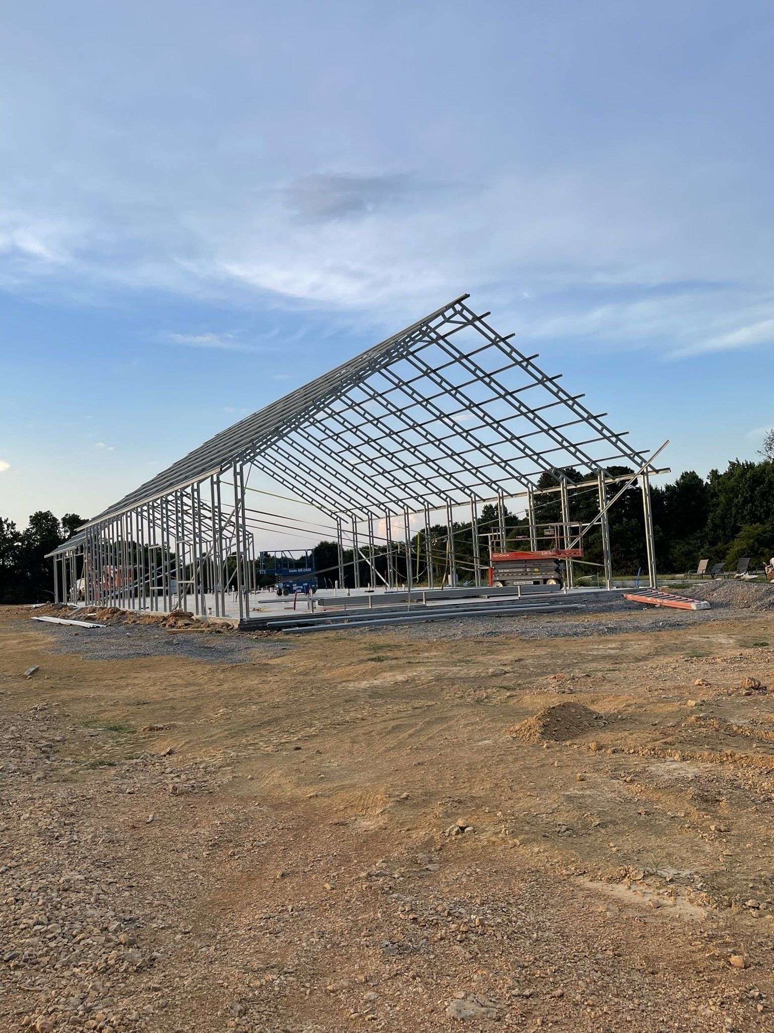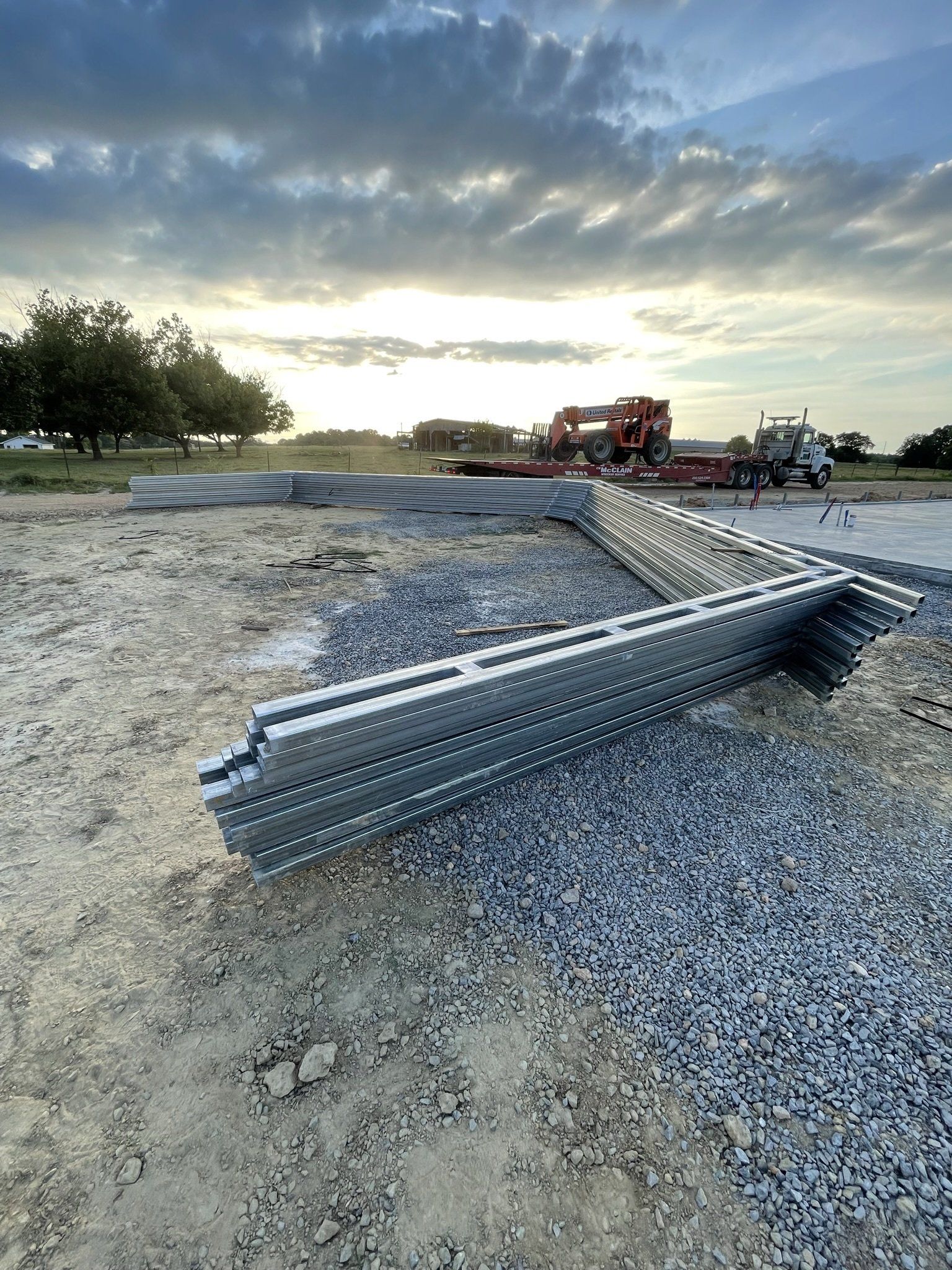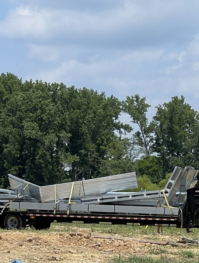 During all the "waiting" we designed our home on a 5.99 app. We knew what we wanted and with a Barndominium you have an "open floor plan" we spent many nights working the details out to fit our lifestyle. Here comes our frame!!! Our home is a 42'W x 72'L x 12'H steel frame. This framing system is double tubing. We have a 26'W x 40'L x 10'H attached garage.